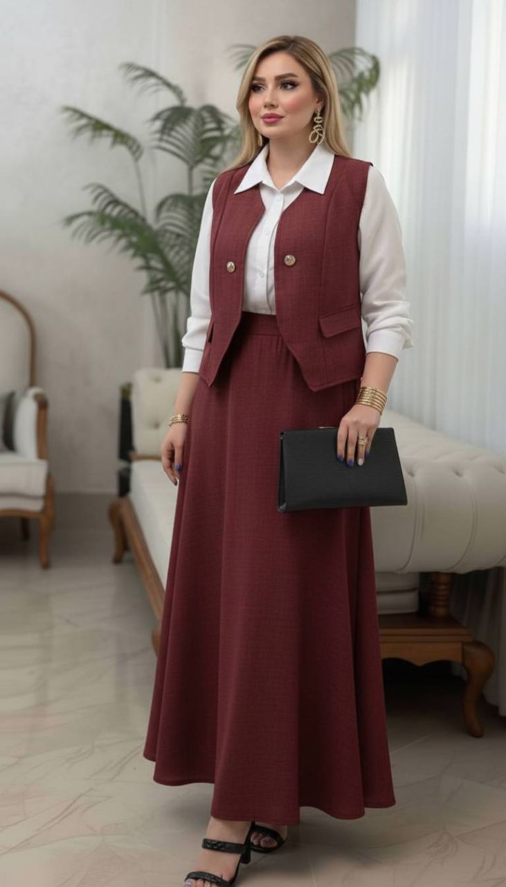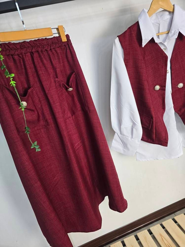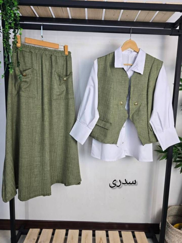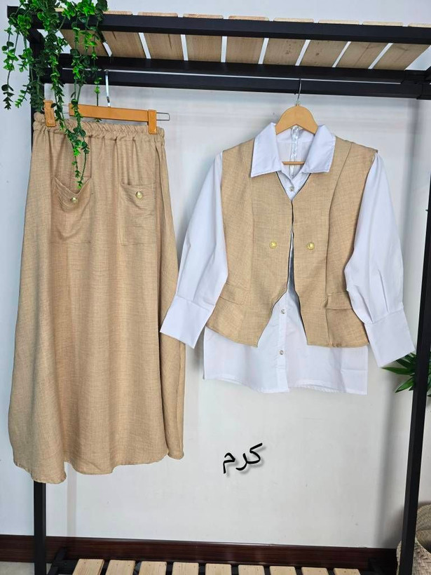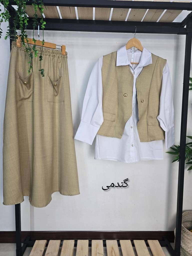 یه کار سه تکه شیک شامل شومیز و دامن و وست ،