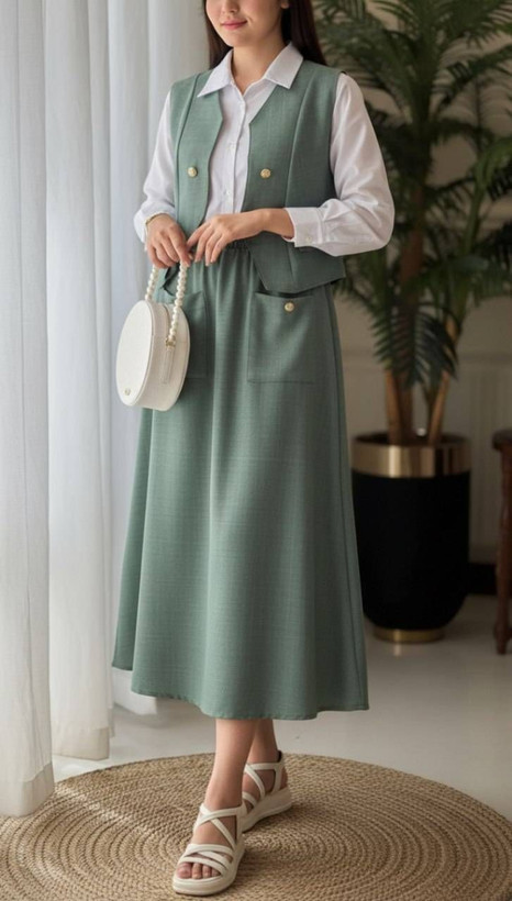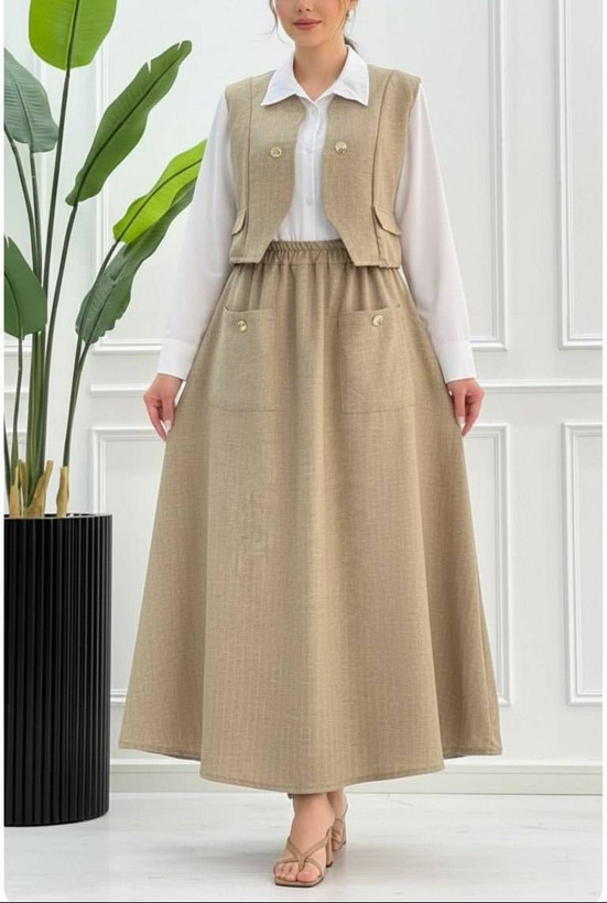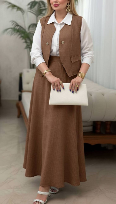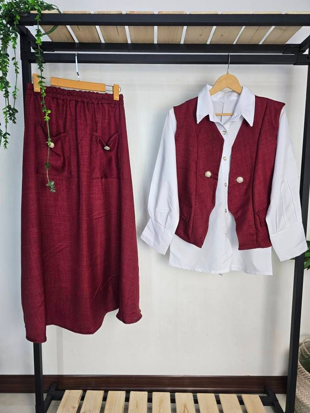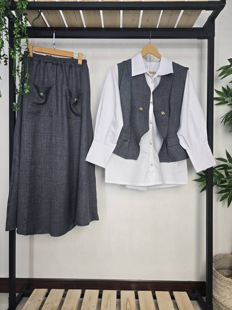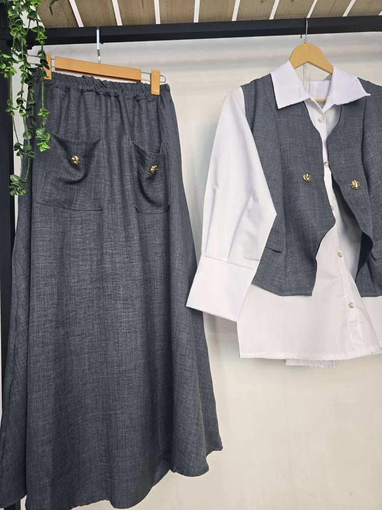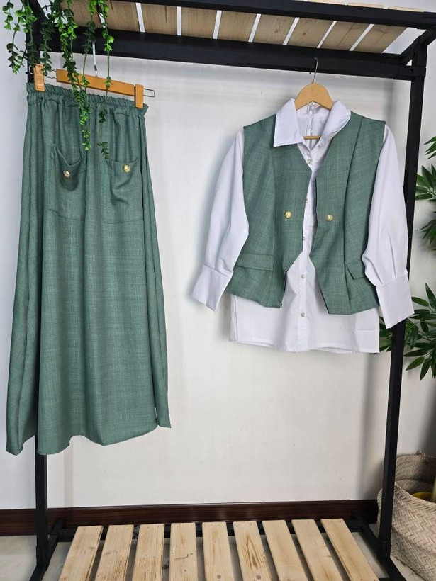 یه کار سه تکه شیک شامل شومیز و دامن و وست ،
